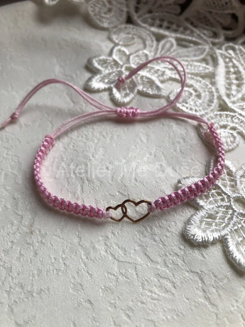 Drhaný náramek s mezidílkem ve tvaru dvojsrdce z růžového zlata.