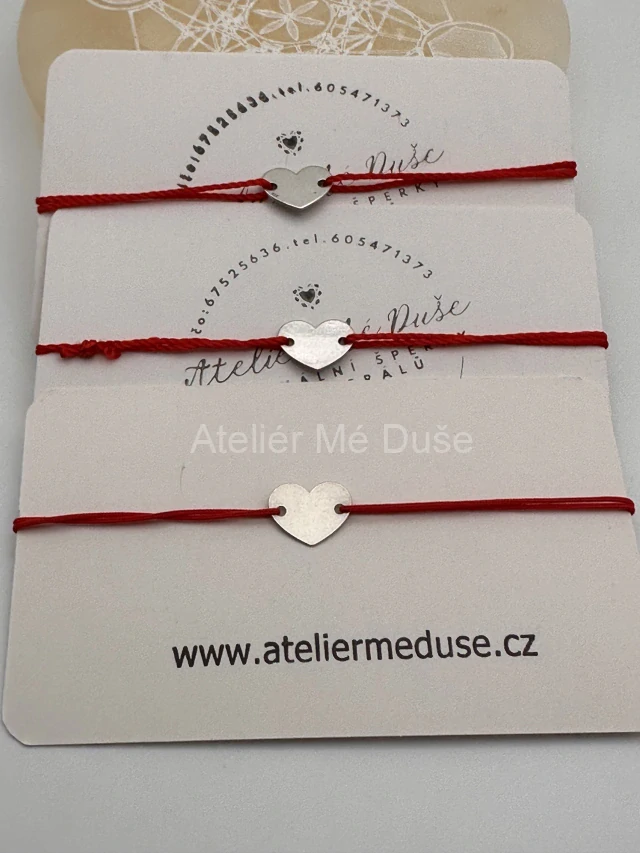 Šňůrkový náramek se srdíčkem ze stříbra - nastavitelný minimalistický náramek