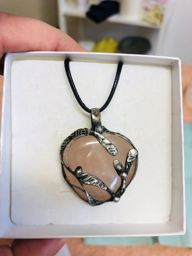 Cínovaný šperk s přírodními minerálními kameny.
