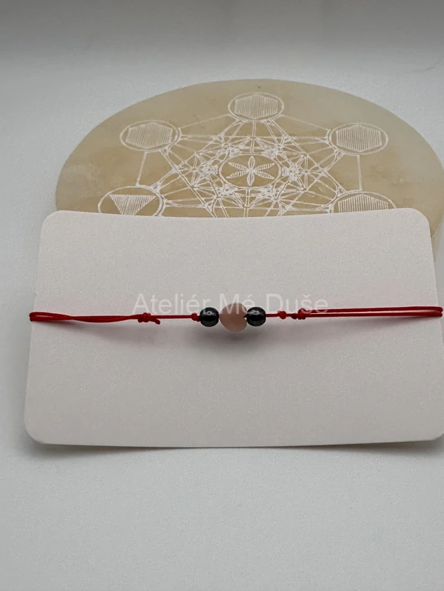 Šňůrkový náramek s růženínem a hematitem – ochrana a láska